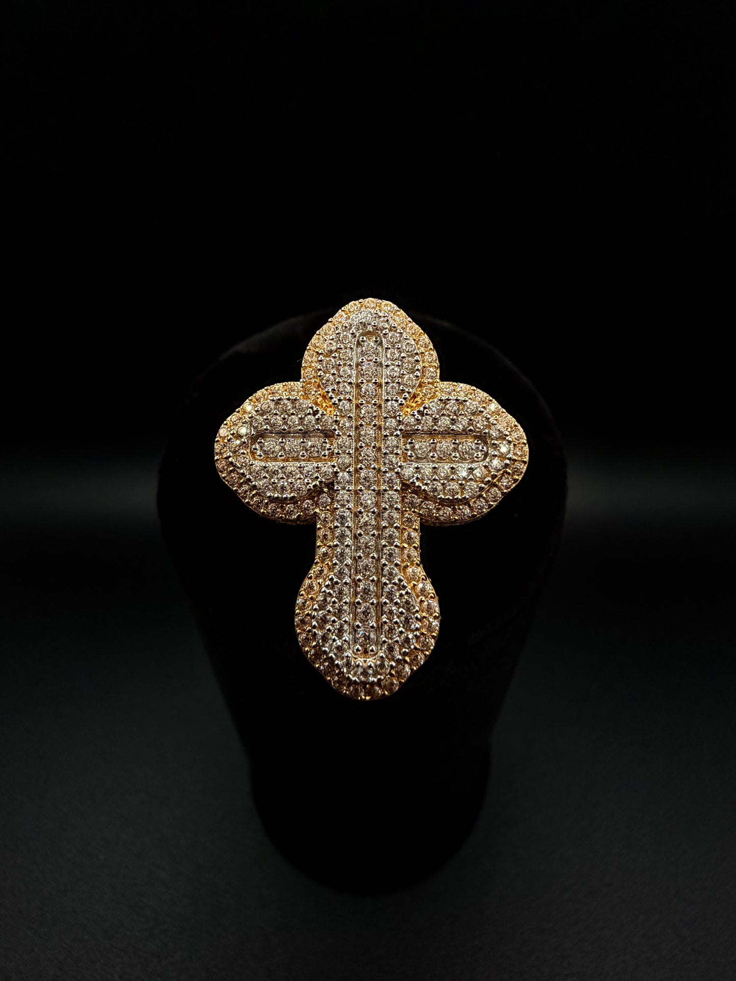 14K Cross Pendant Cz Stones With Ice Chain Yellow Gold